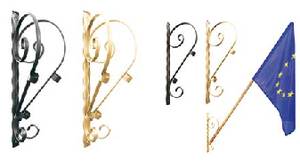 40° Veggfestingarnar eru zink húðaðar og duftsprautaðar í gylltum lit. Festingarnar eru 40cm langar og henta vel fyrir fánastangir sem eru 25mm breiðar